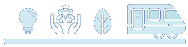 In a fast-paced, evolving and more digital railway industry, we aspire to lead change by example and finding new better ways and tools with more efficient methods to deliver the outcomes. We encourage our team and partners to think creatively and rightly use their knowledge to overcome challenges and drive innovation.